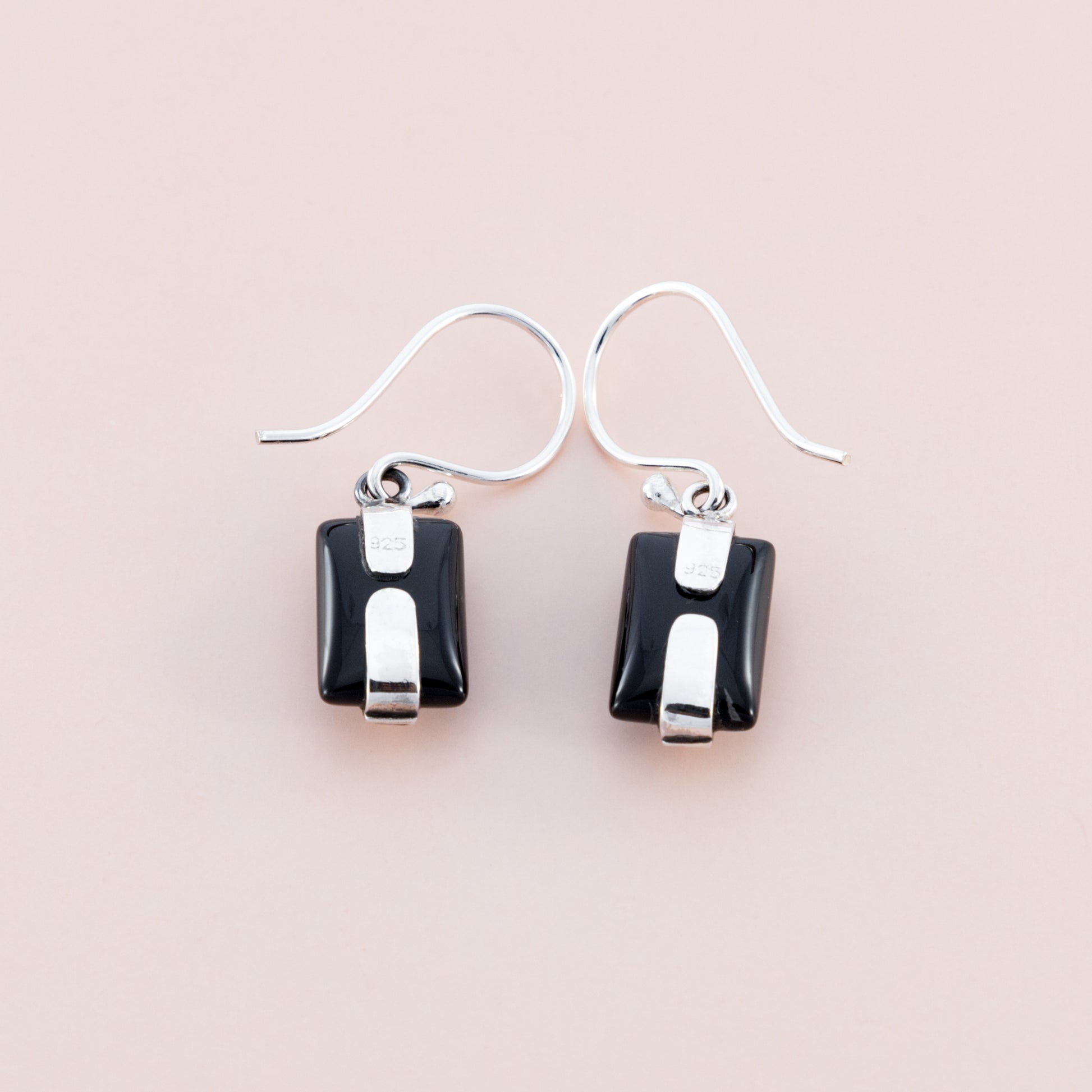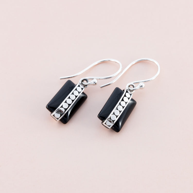 Do you need a little something to spruce up your outfit? These earrings combine the classic elegance of black onyx with a modern twist. The dotted silver stripe lends a touch of whimsy, while the onyx itself is classic and chic. Go ahead and make a statement with these earrings. You're sure to turn heads wherever you go.
