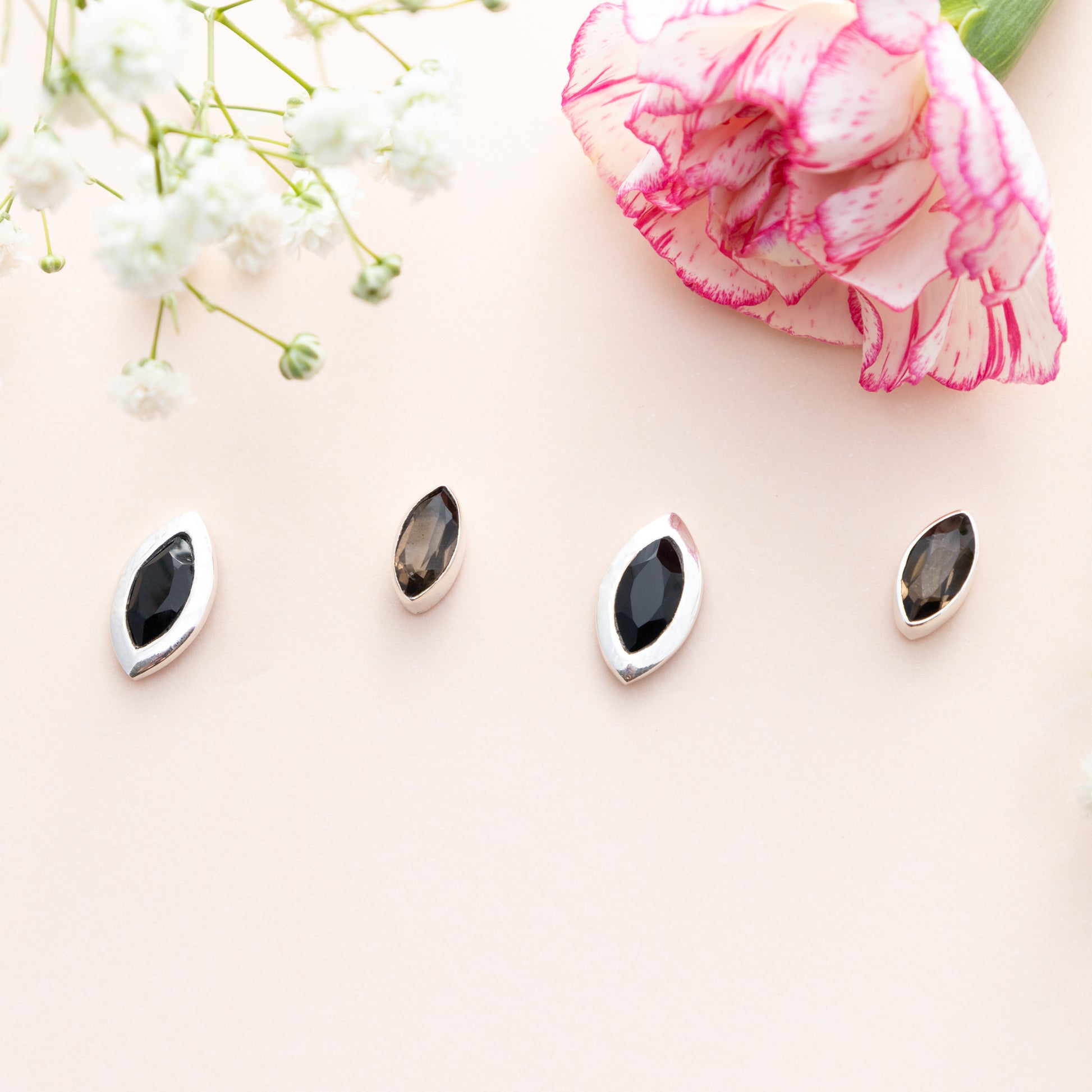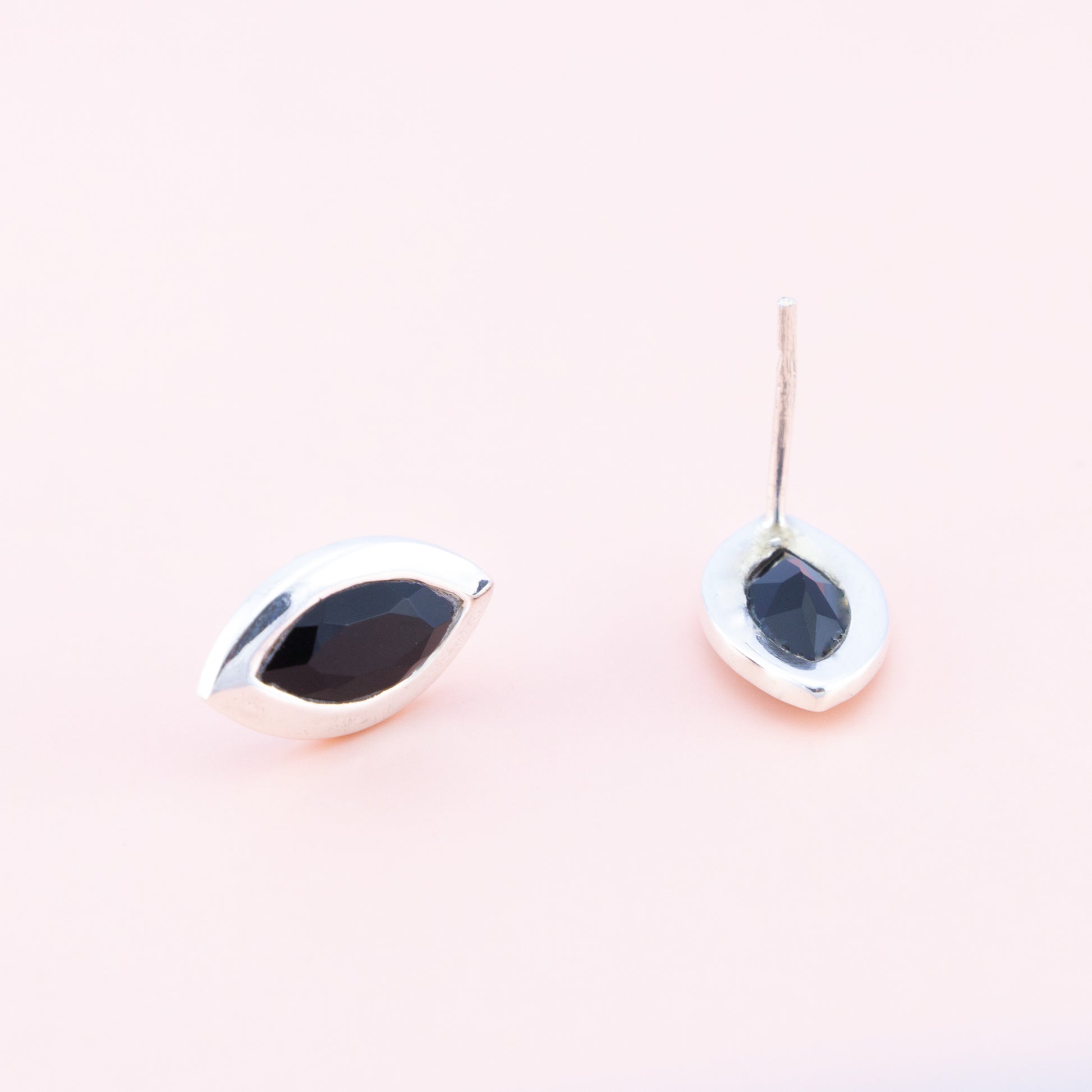 Beautiful, striking and chic. These studs are made of sterling silver, with black onyx gemstones in a teardrop shape. The design of these earrings is simple, but stunning, with a dazzling array of tiny facets that sparkle in the light as you move. You will love wearing them every day of the week.