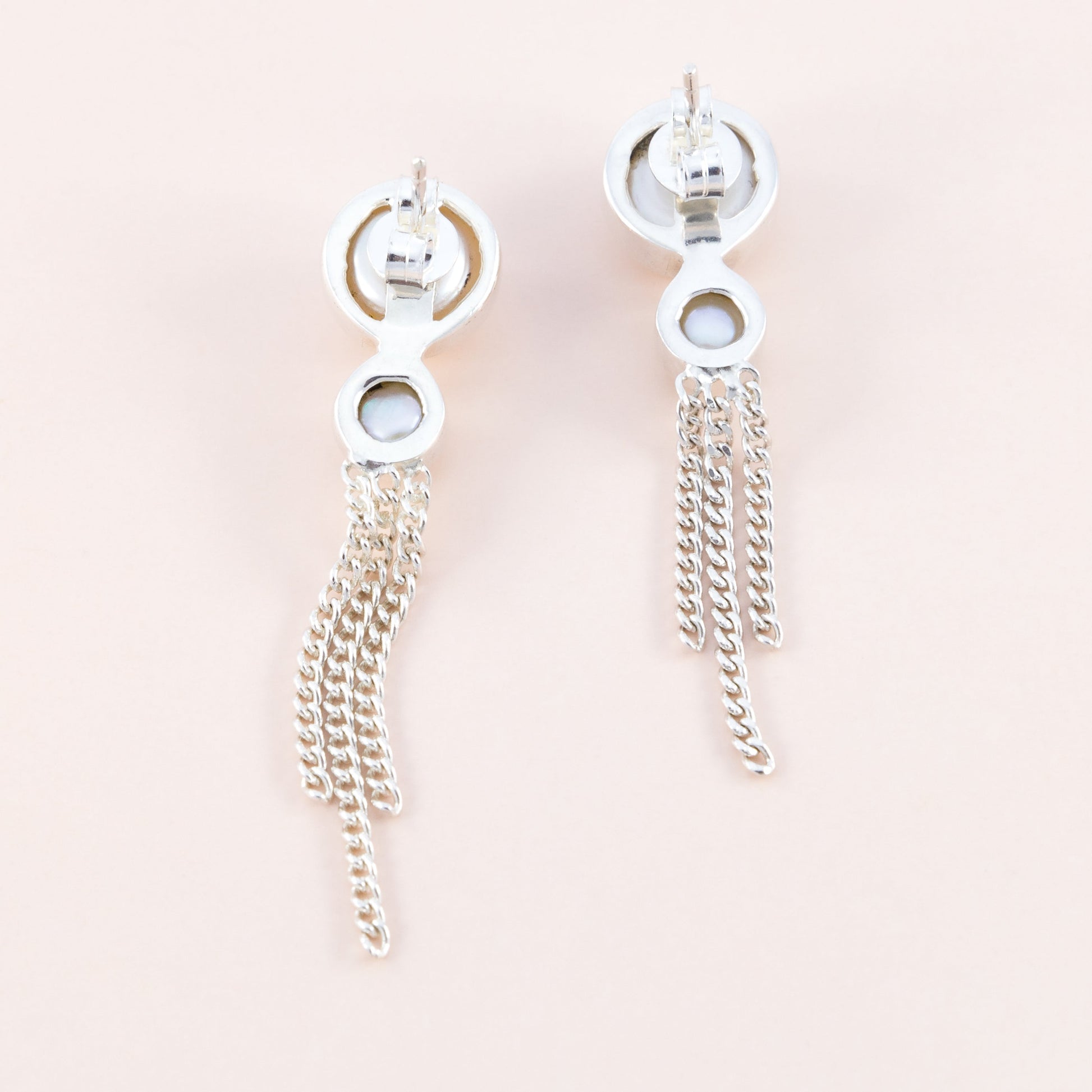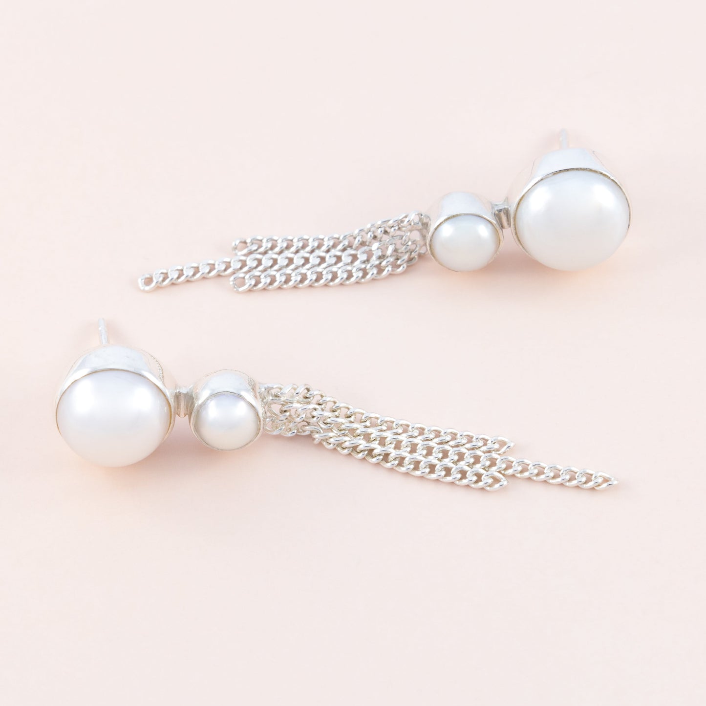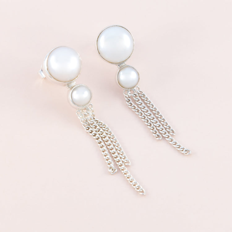 These stunning earrings feature three delicate chains that swing as you move. The chains hang from two pearls, adding extra elegance and making them perfect for any special occasion. So don't settle for ordinary earrings when you can have something truly special.