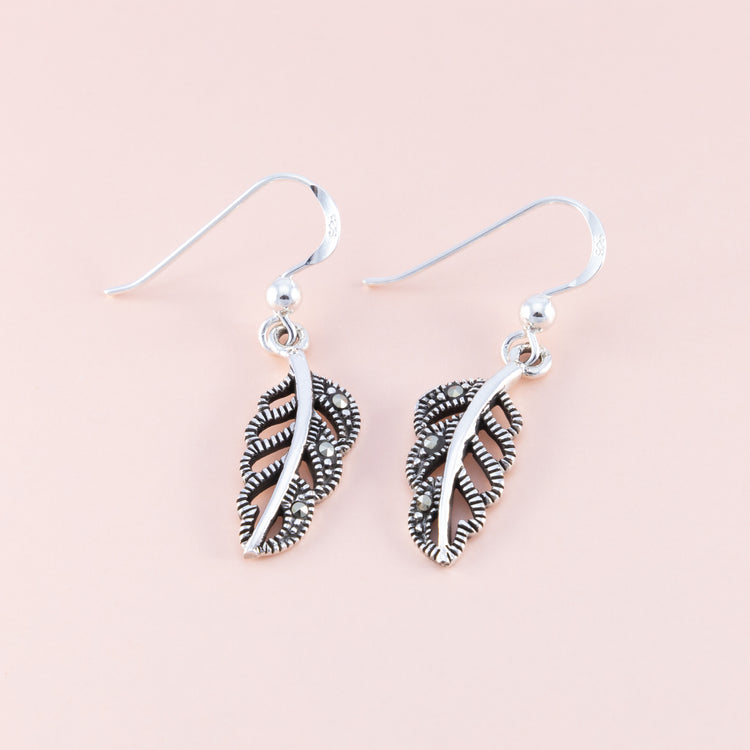 These gorgeous sterling silver earrings are the perfect way to add a bit of edge to any outfit. These earrings are delicately crafted in a leaf shape and the sparkling marcasite gemstones catch the light beautifully. Here are your versatile marcasite earrings, able to be worn day or night.