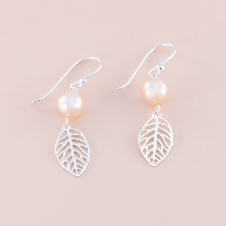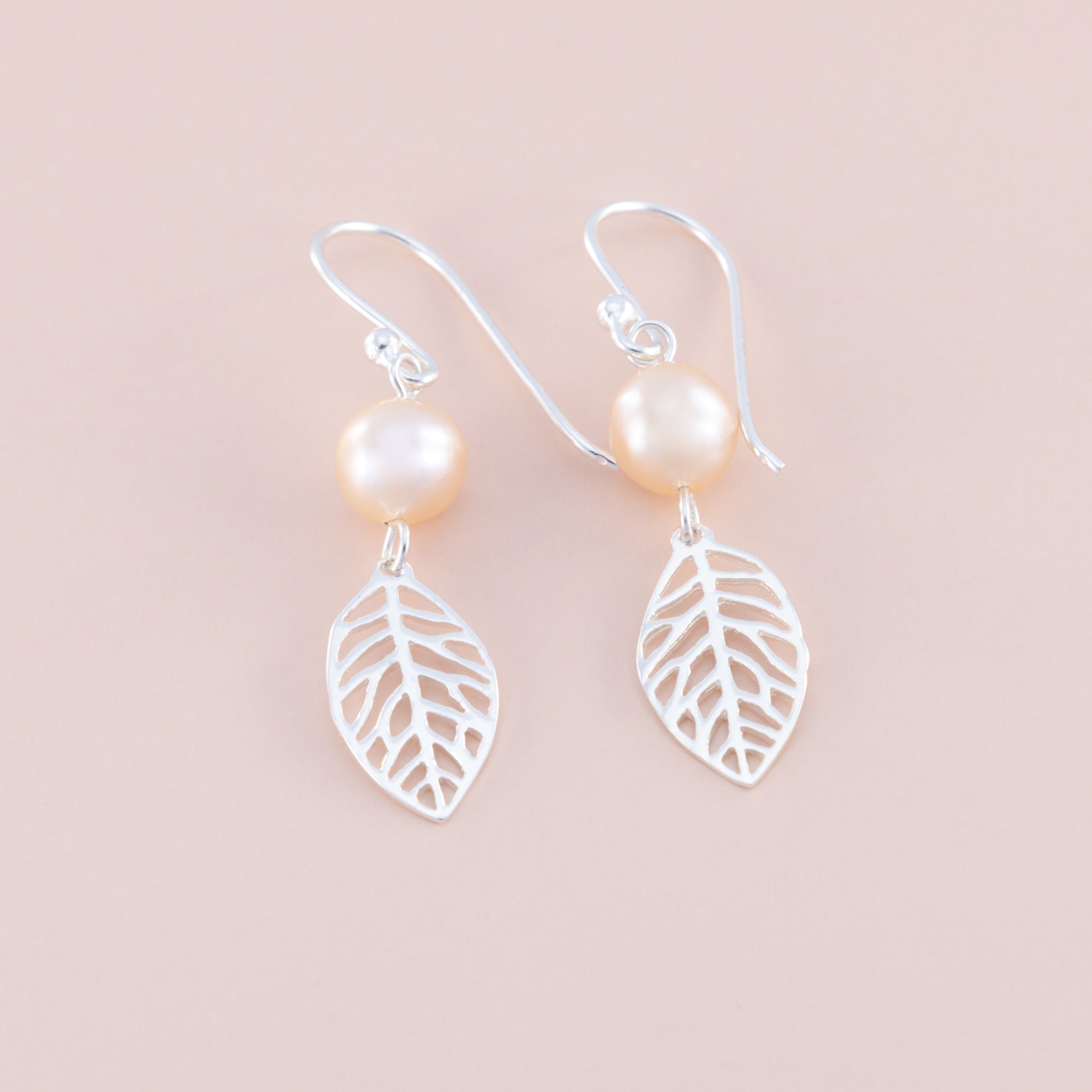 These earrings are crafted from sterling silver and feature a delicate leaf design with a gorgeous peach pearl. They're the perfect way to add a touch of nature-inspired beauty to your look. The creative and delicate design is sure to make a statement and will put that finishing touch on your outfit.