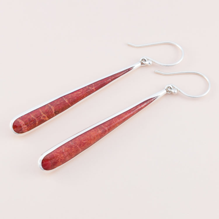 Red Coral Long Drop Earrings
