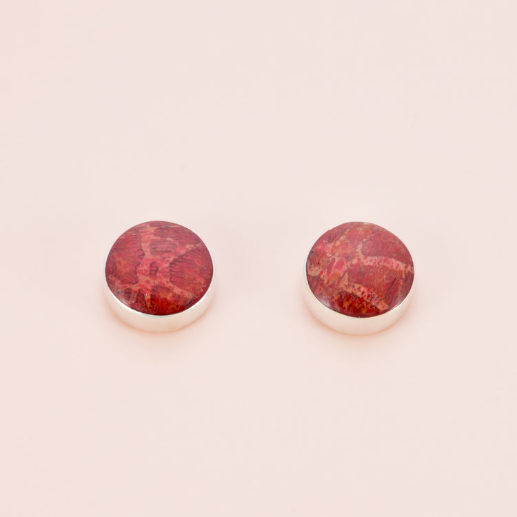 Crafted with exquisite attention to detail, these silver studs are more than just earrings. They're a simple statement piece that effortlessly elevates any ensemble. The red coral is delicately set in sterling silver and creates a captivating contrast that catches the eye and sparks conversation.