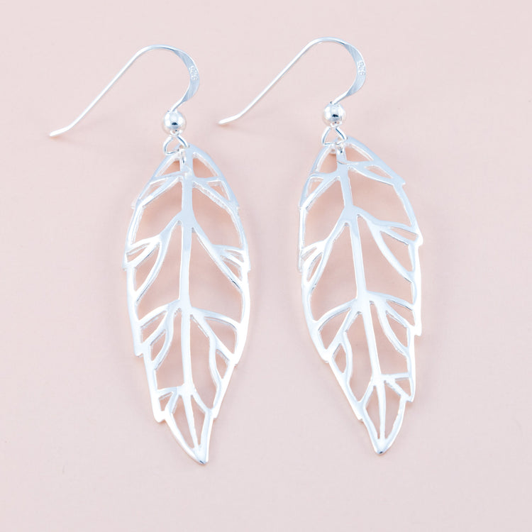 Skeleton Leaf Silver Earrings