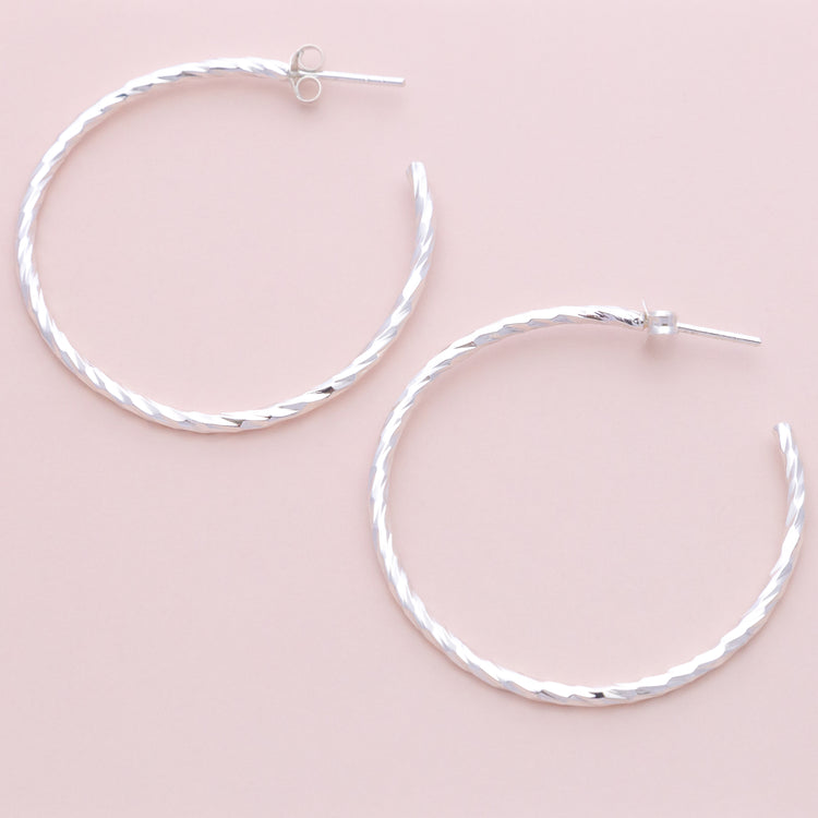 These classic hoops have a twist - quite literally - that takes them from basic to eye-catching in an instant. Made of sterling silver, they are a must-have for any fashion-savvy person. The sleek and simple design is perfect for everyday wear, but can also be dressed up for a night out. This could be your new go-to pair of earrings that are sure to impress.